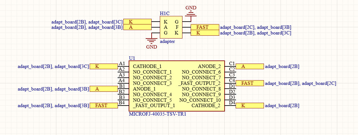 An adapter board for the SiPM is designed to allow easy connection between the silicon photomultiplier 4x4mm TSV(Through Silicon Via) and the readout. You can download the schematic and the PCB layout from here